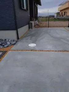 アンティーク調のレンガで縁取りをして、アクセントを入れながらの土間コンクリートになります。